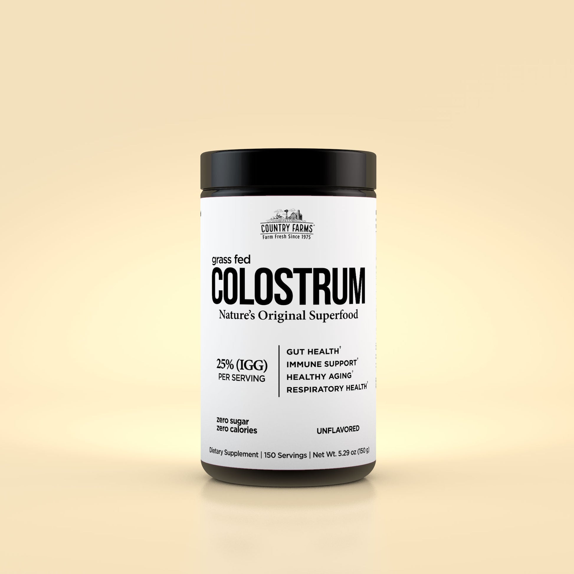Colostrum is a nutrient-rich form of a mother’s milk that provides antibodies and antioxidants to supercharge the immune system and boost heathy development. Country Farms Grass-Fed Colostrum is a high-quality supplement from cow’s milk that provides the same concentrated nutrition that enhances overall well-being. It supports digestive health by promoting a healthy gut lining and helps address bloating through its ability to enhance the gut barrier and balance the microbiome. Country Farms Colostrum promotes a natural boost in energy with essential antibodies and growth factors, to support enhanced stamina and vitality without the jitters or crashes of stimulants.