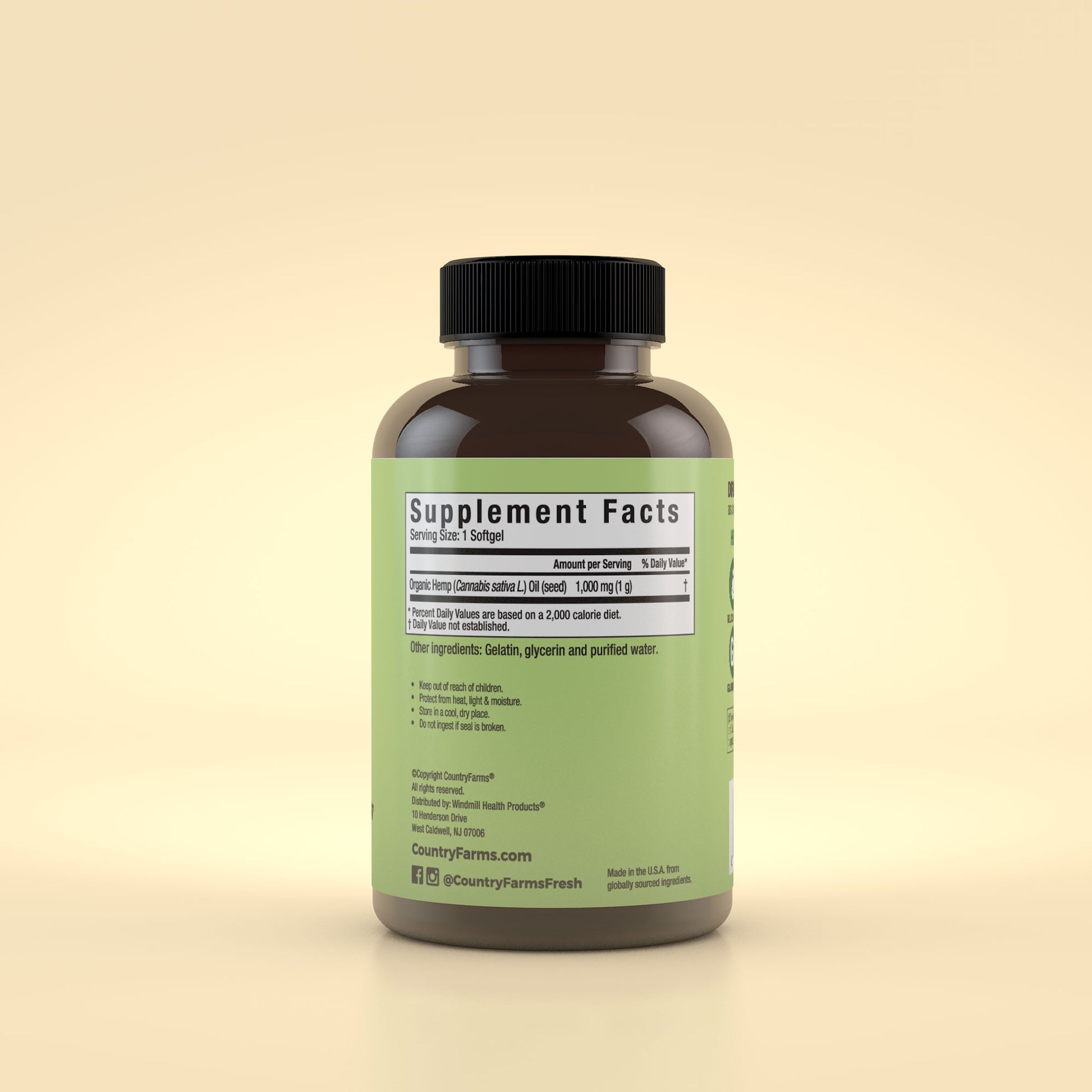 Together, these compounds work harmoniously to support immunity, help boost homeostasis and deter stress levels in the body. Country Farms Hemp Seed Softgels contains essential fatty acids that may help maintain proper hair, skin, and nails. Other research has shown that it may be beneficial for brain and cardiovascular health. Due to additional studies that continue to occur, scientists may find more evidence of the potential benefits.
