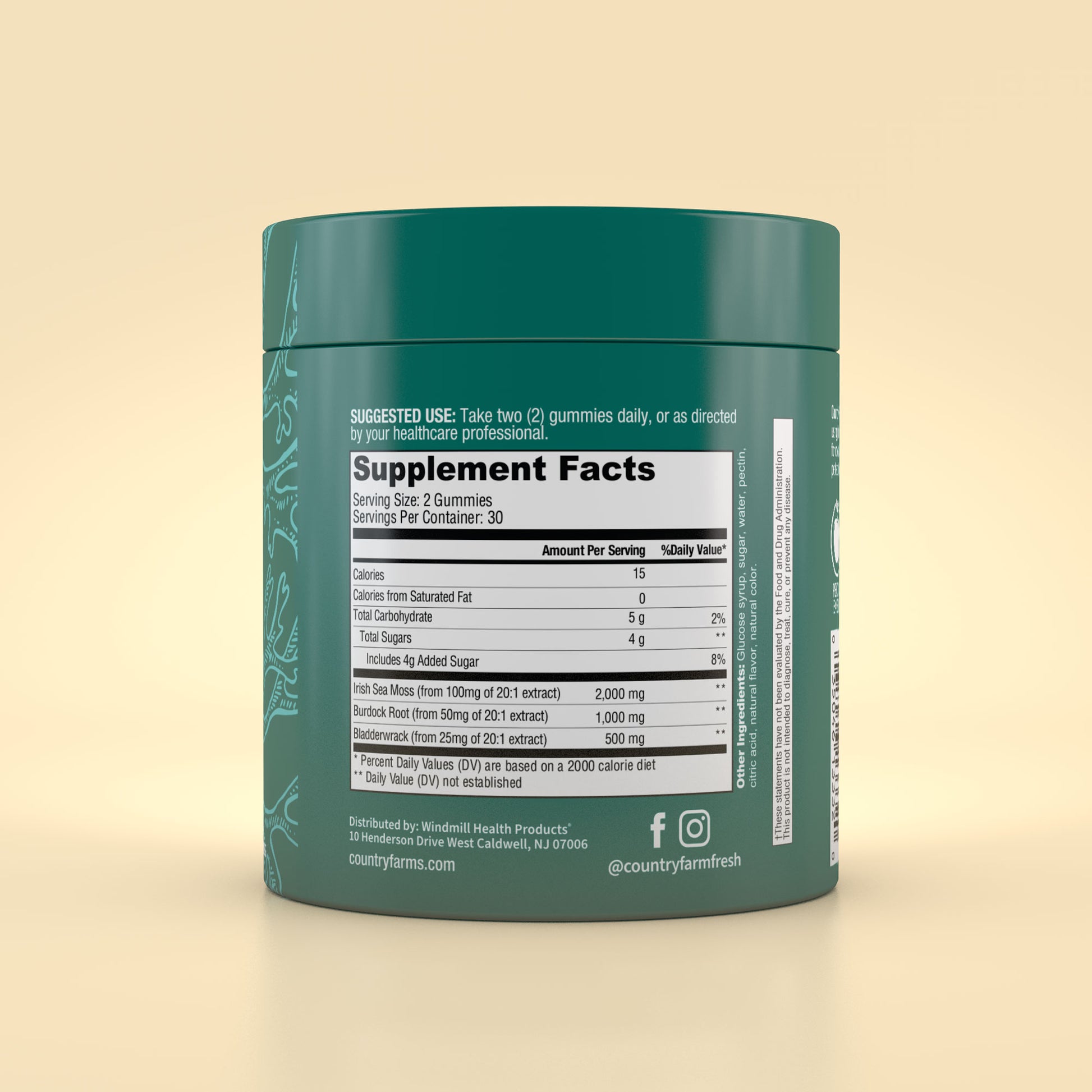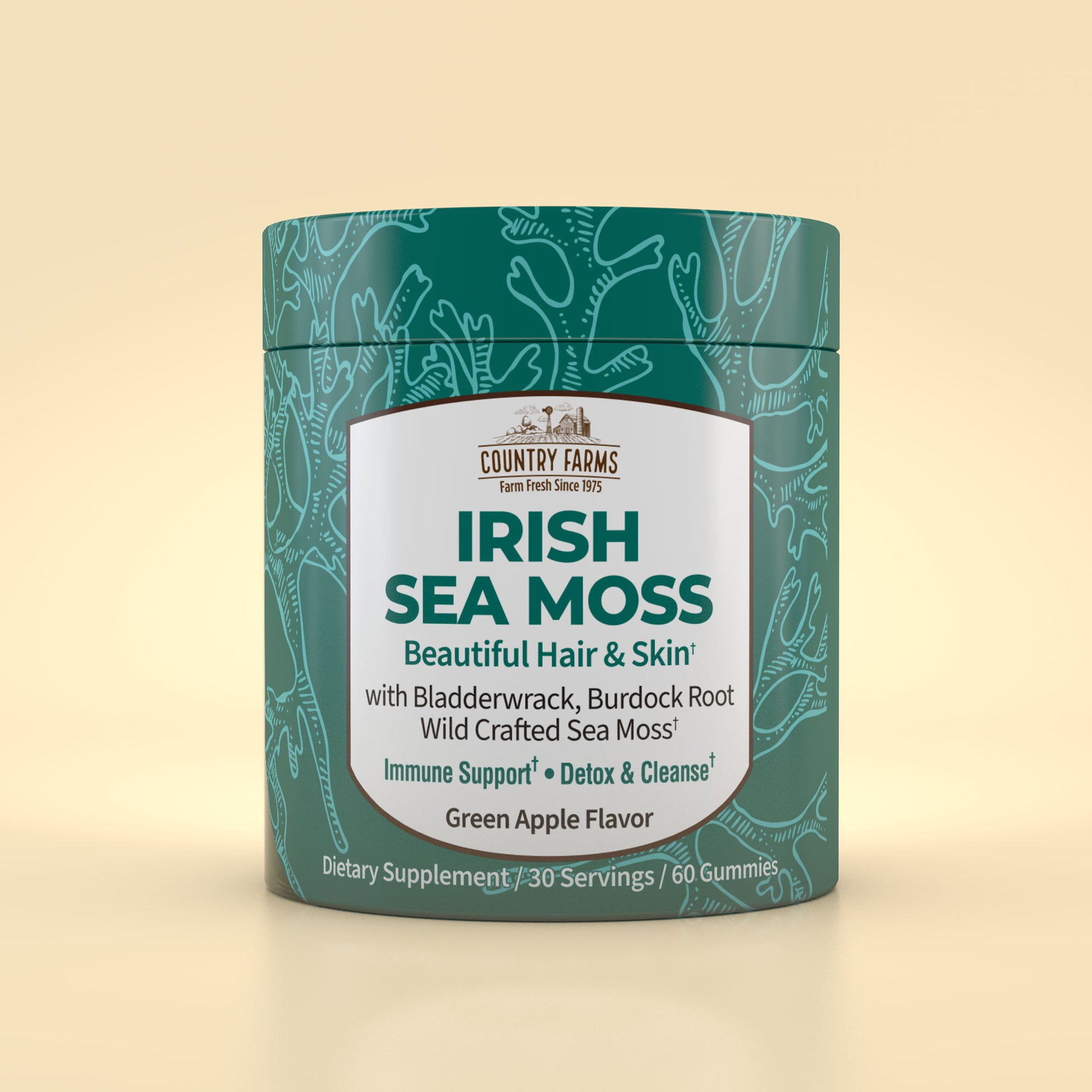 Country Farms’ tasty green-apple-flavored gummy supplements are the perfect addition to your daily wellness routine. This powerful triple-blend formula contains Irish sea moss, burdock root and bladderwrack, which are synergistically blended for maximum nutritional value.
