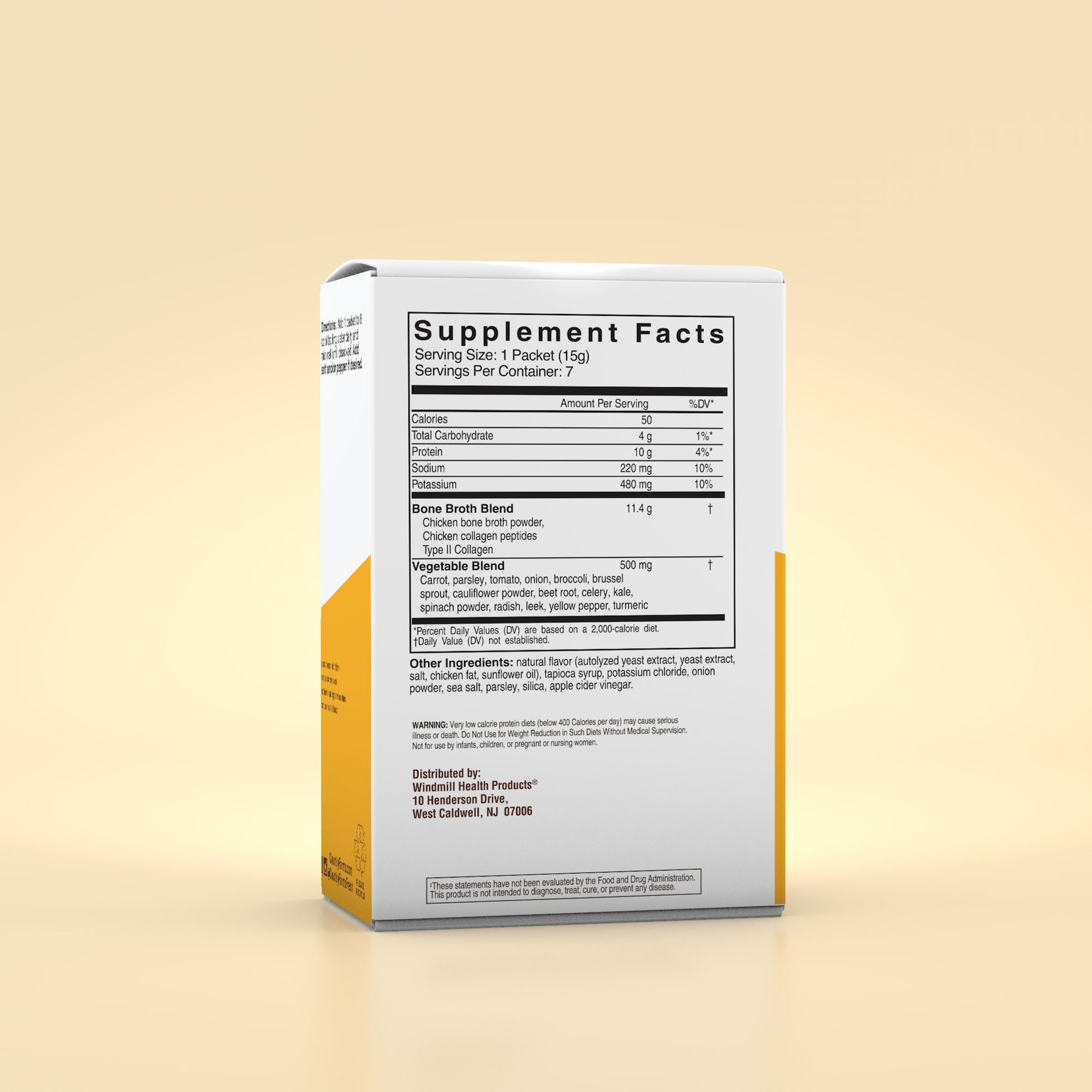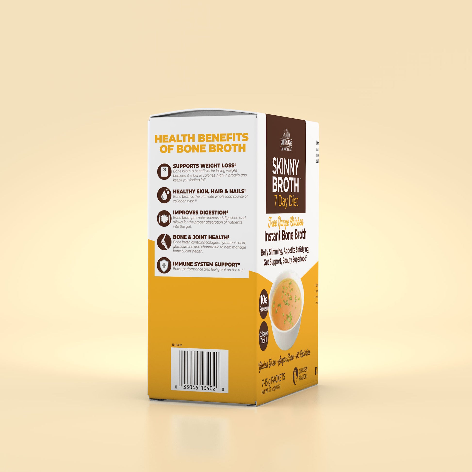 Country Farms Skinny Broth 7 Day Diet is a protein-dense, instant powder bone broth. This delicious chicken flavored broth provides an ideal source of collagen type II that helps support gut health, along with promoting beautiful skin, strong nails, and luxurious hair.